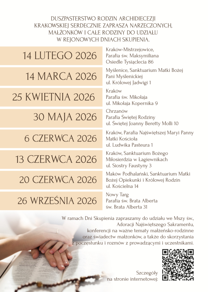 Udział w Dniu Skupienia jest bezpłatny i nie obowiązują zapisy.